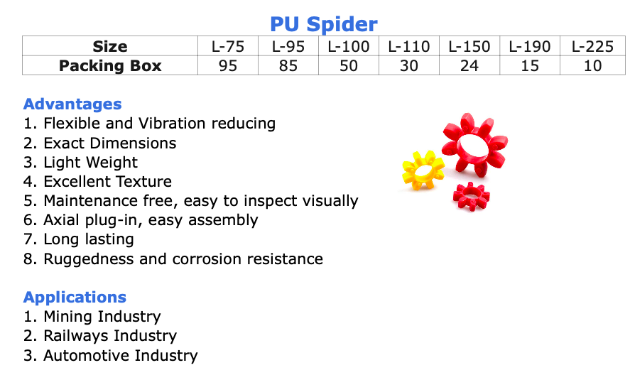 PU Spider is light weight, has good flexibility and abrasion resistance. It has a longer operational life